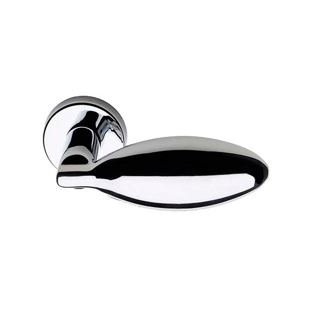 Coppia di pomoli per porta in ottone, interamente realizzate in Italia, dalle linee accattivanti. Questo pomolo è disponibile in tre diverse finiture: ottone lucido, cromo e cromo satinato.