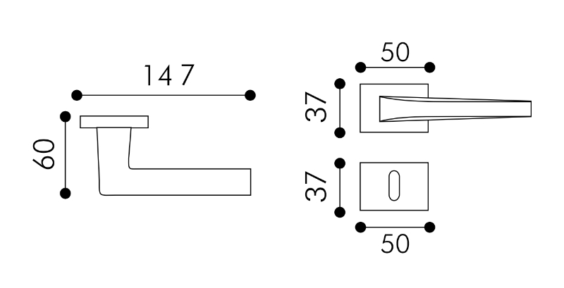 - Tipologia: Maniglia porta con rosetta rettangolare;
