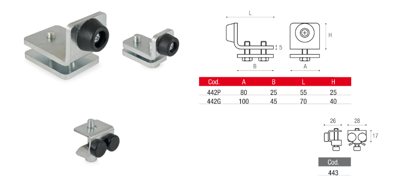 Arresti Fine Corsa per Carrelli Scorrevoli - Adem 442P 442G 443