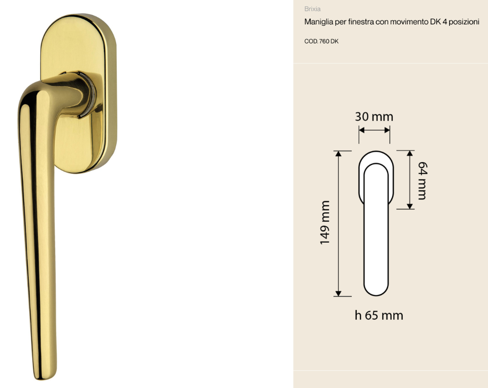 Misure della maniglia per finestra Brixia Linea Calì