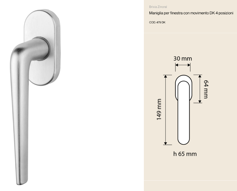 Brixia Zincral Linea Calì - Maniglia per Finestra con Movimento Anta Ribalta