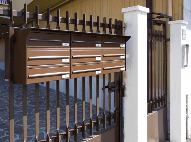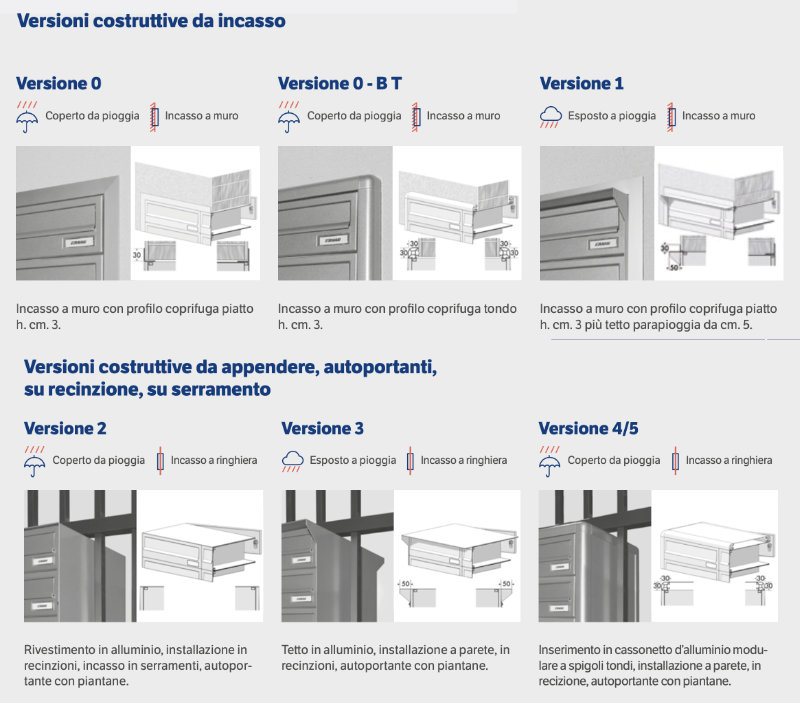 - Lato esterno (introduzione posta) in lamiera d’acciaio zincata e verniciata con feritoia protetta da pateletta in estruso d’alluminio portanome antivandalo;