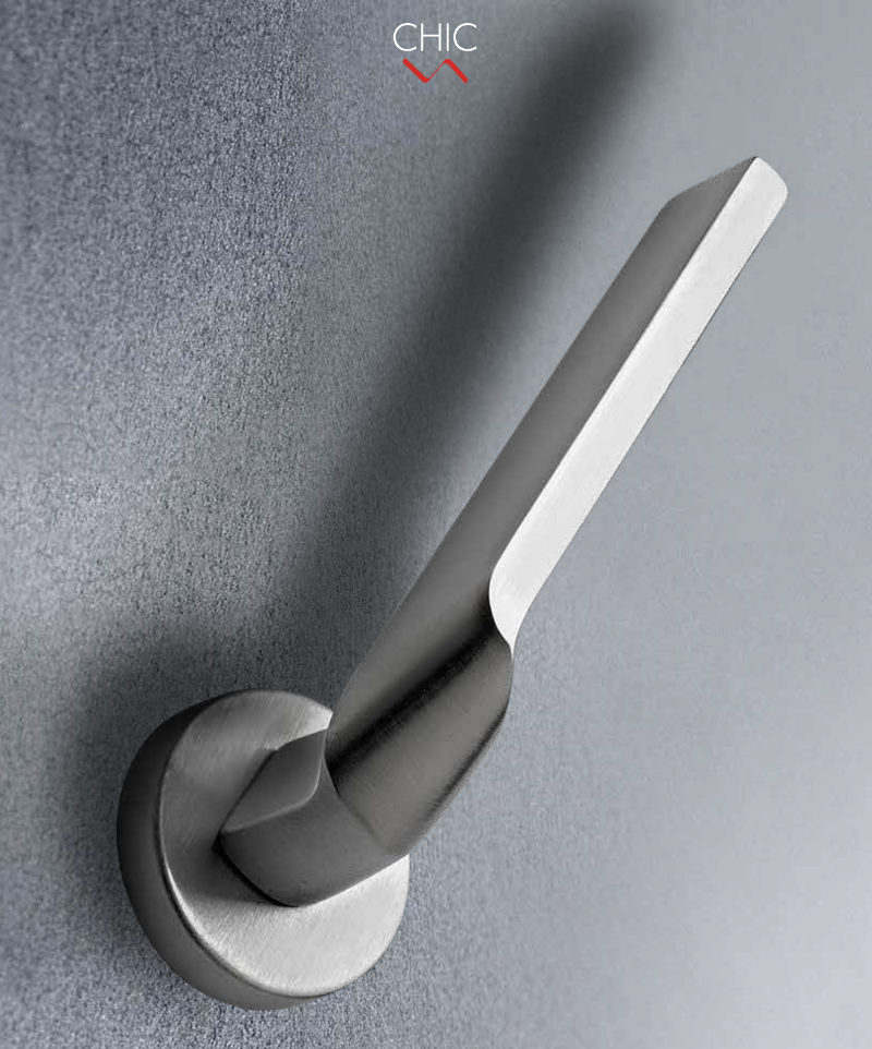 materiali di alta qualità e con una grande cura per le finiture, la maniglia Chic Arieni si distingue per le sue linee moderne e la rosetta tonda che dona un tocco di morbidezza agli ambienti.