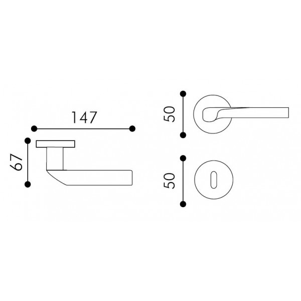 rosetta e bocchetta tonda. Su richiesta disponibile anche la versione con rosetta più sottile, su placca e maniglia per finestra (contattaci se sei interessato).