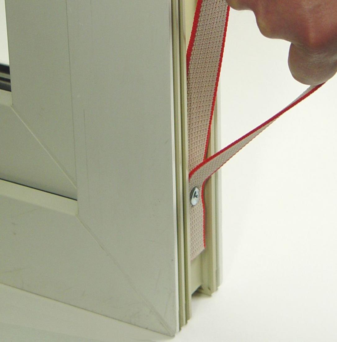 Cinghia per il trasporto della finestra con vite autoforante.