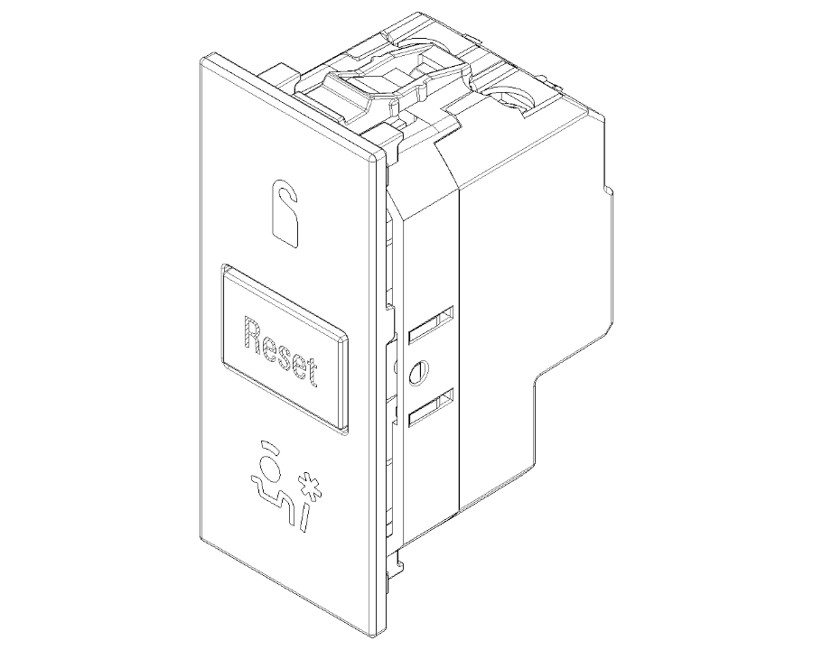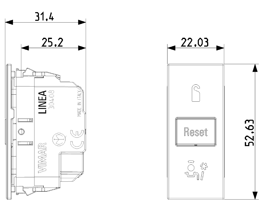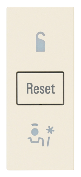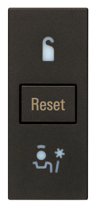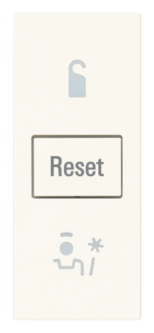 Codice articolo VIMAR LINEA 30408 fornito con unità di segnalazione LED: luce rossa per la funzione Do Not Disturb (DND) e luce verde per Make Up Room (MUR).