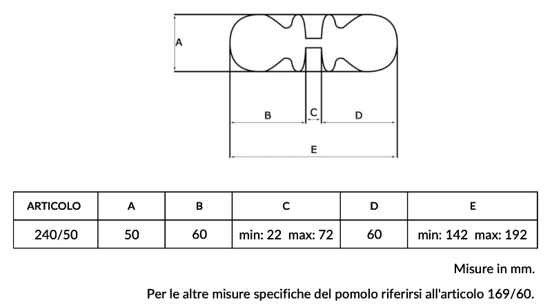 La coppia di pomoli Saguatti 240 ha le seguenti misure.