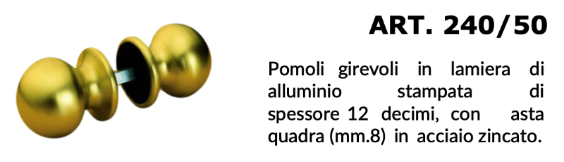 Pomoli girevoli in lamiera di alluminio stampata di spessore 12 decimi, con asta quadra 8 mm in acciaio zincato.