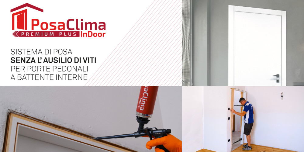 PosaClima InDoor Premium Plus reinventa l'installazione di porte interne a battente, eliminando la necessità di utilizzare viti.