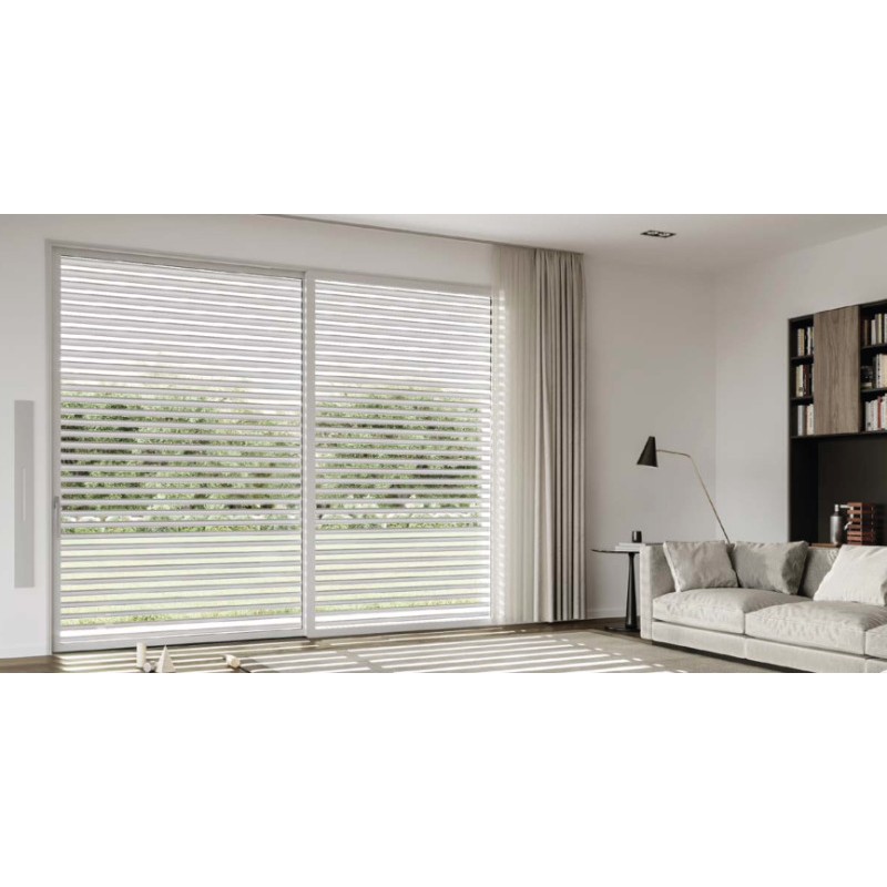 - Discesa automatica delle lamelle in posizione di lavoro da 0° a 90°, arresto ed orientamento a qualsiasi altezza;