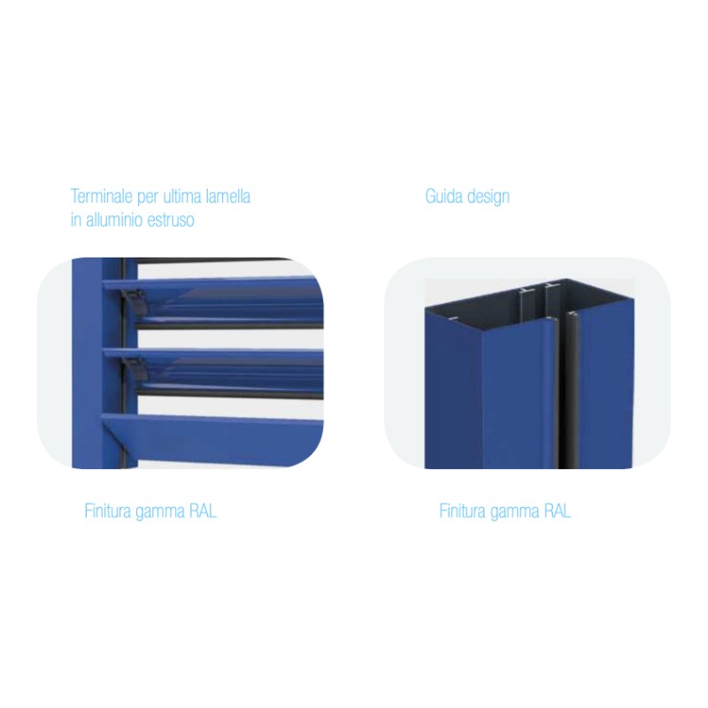- Lamelle profilate preverniciate, dotate di guarnizione antirumore sul bordo esterno.