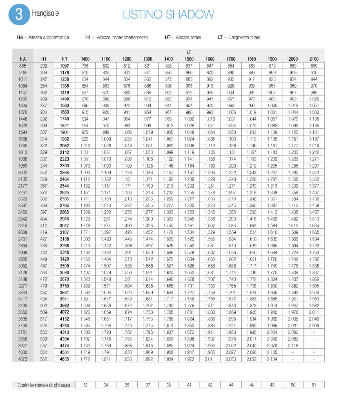 In più per fare il preventivo del frangisole su misura dobbiamo sapere se desideri il terminale di chiusura e i colori RAL delle lamelle profilate e delle guide.
