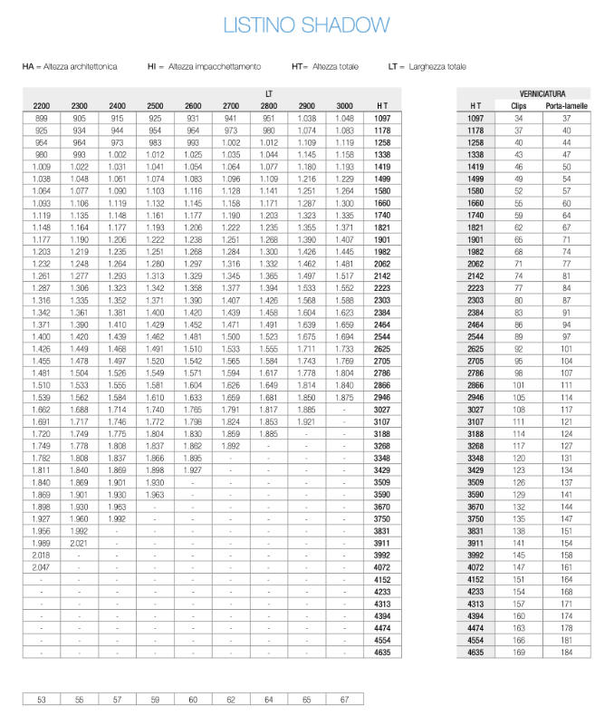 - Lamelle preverniciate dotate di guarnizione antirumore;