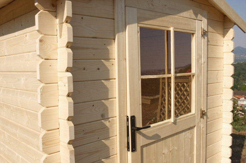 Casetta in legno Gaia Losa in pino grezzo non trattato, tipologia costruttiva blockhouse.