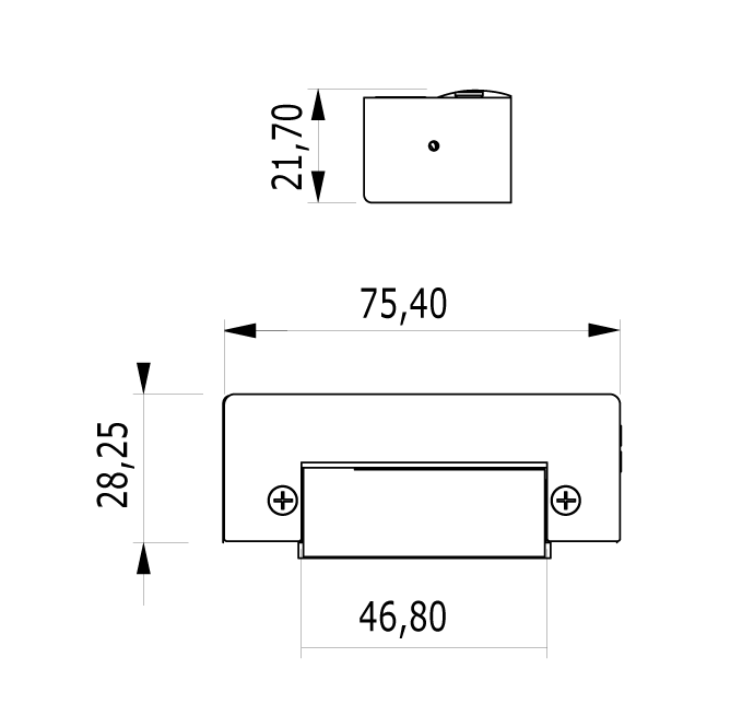 Dimensioni: ( Lung. x Larg. x Prof. ) 75,40 x 21,7 x 28,25mm.