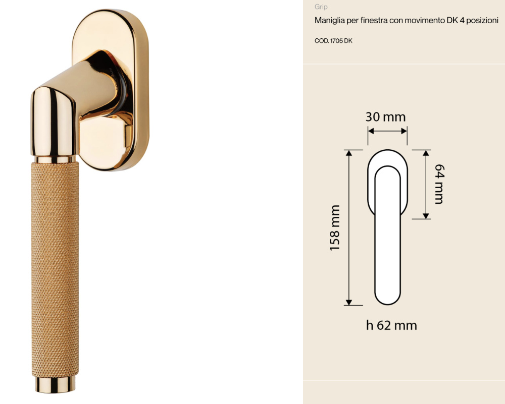 Grip Linea Calì Maniglia per Finestra - Movimento DK a 4 posizioni