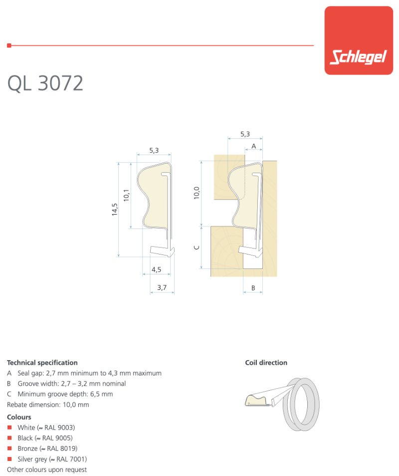 Specifiche tecniche guarnizione Schlegel QL 3072