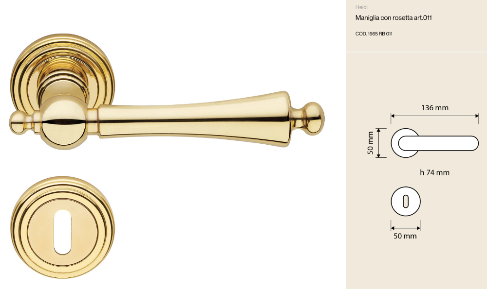 Heidi Linea Calì Maniglia per Porta Classica in Ottone con Rosetta