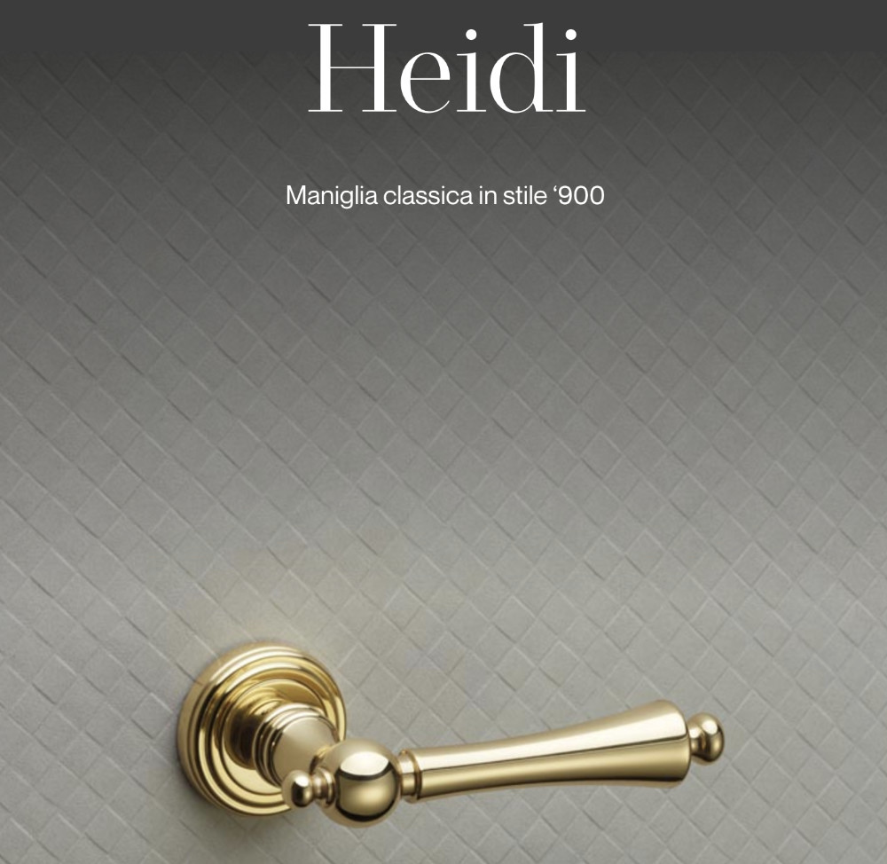 Realizzata in ottone e ordinabile in diverse finiture pregiate, Heidi Linea Calì è la maniglia per porta ideale per residenze di lusso, dove la bellezza degli arredi si unisce alla funzionalità di un accessorio senza tempo.
