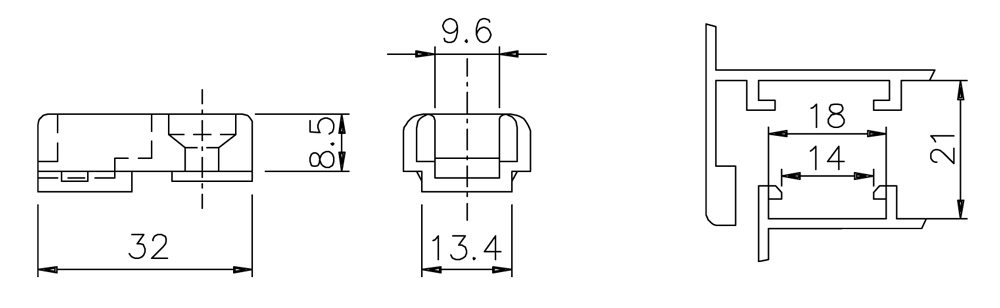 Realizzato per essere applicato nella parte superiore ed inferiore del telaio di infissi ad una o più ante con la funzione di ricevere i puntali dei catenacci e dei terminali Giesse, o le aste di manovra opportunamente sagomate.