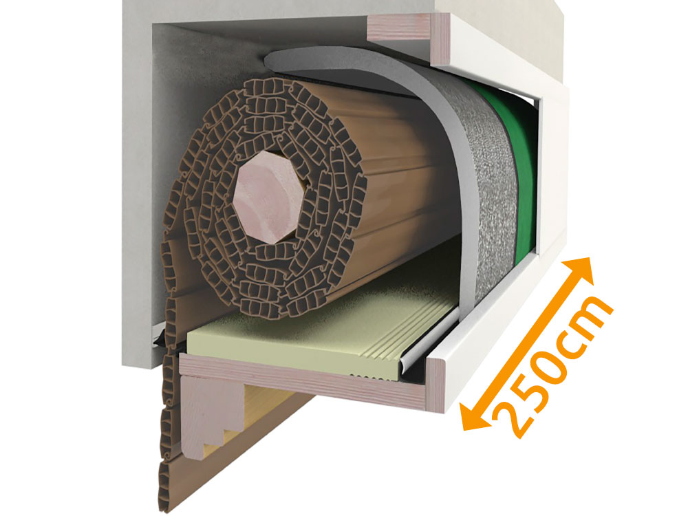 Per questa composizione la lunghezza massima del cassonetto tapparella è di 250 cm (misurazione interna del cassonetto).