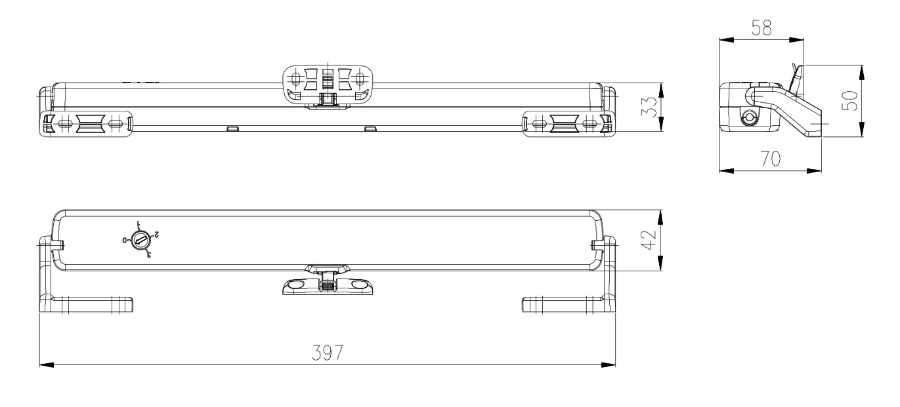 - Dimensioni: 33,5 × 42 × 380 mm.