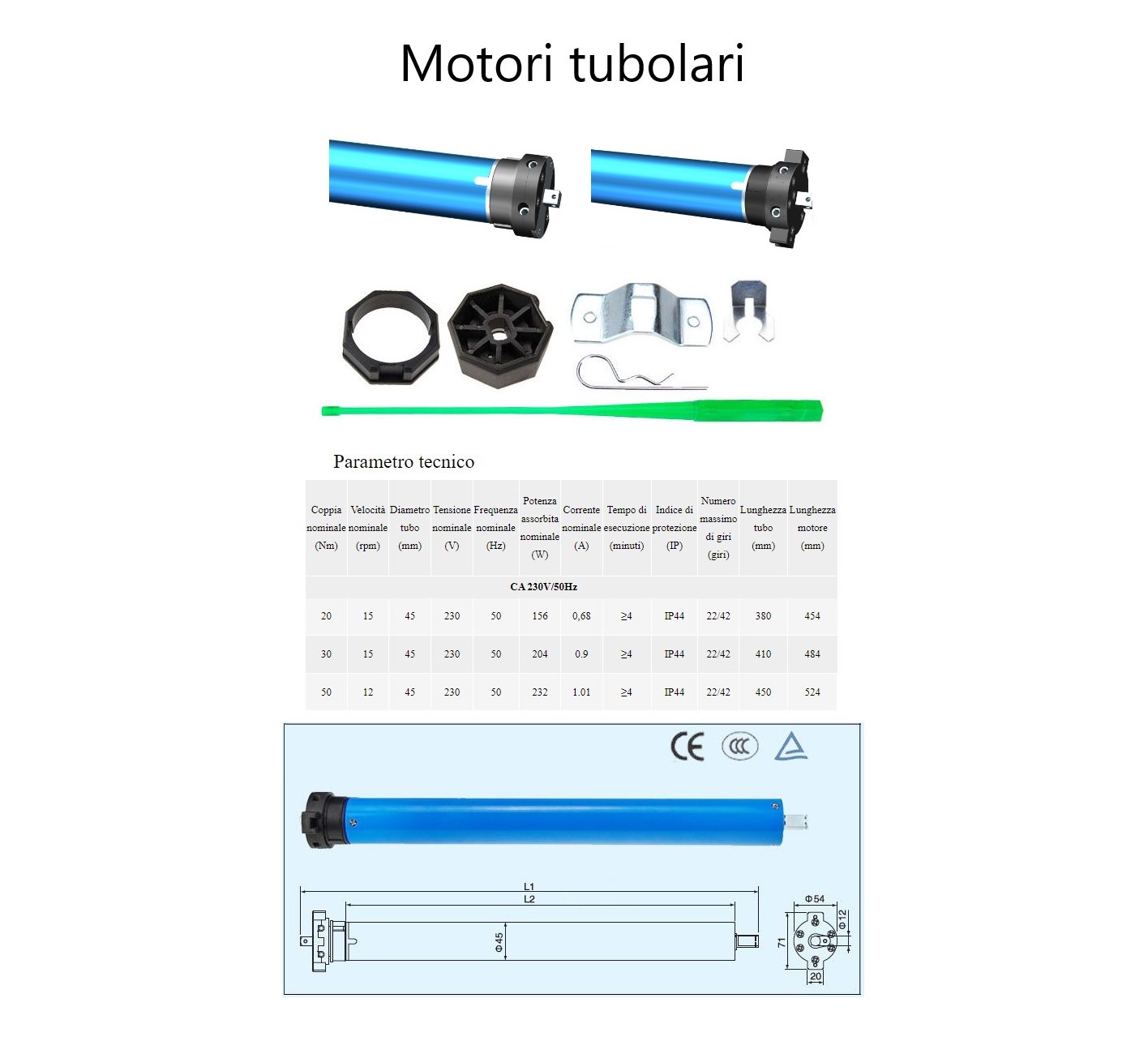 avvolgibile tubolare da 20Nm, 30Nm o 50Nm CA 230V/50Hz. Con diverse opzioni di potenza disponibili, trova il motore ideale per la tua specifica esigenza.