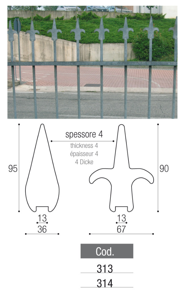 Lance per cancellate: di seguito sono indicate misure e caratteristiche tecniche.