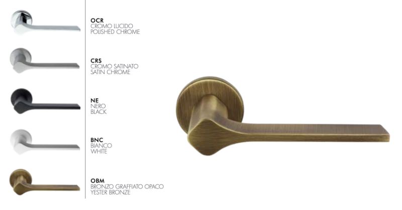 materiali di alta qualità e con una cura attenta per le finiture, la maniglia Laser Arieni si contraddistingue per le linee moderne e la rosetta rotonda che dona un tocco di morbidezza agli ambienti.