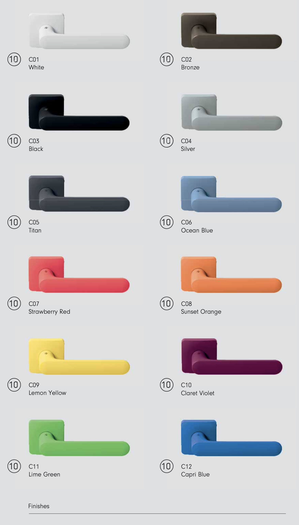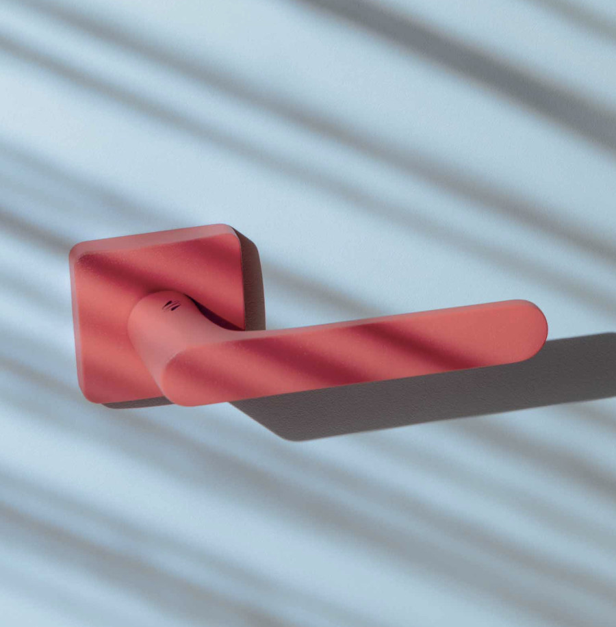 Realizzata in ottone e proposta con rosetta quadrata, è ordinabile in numerose finiture colorate che trasformano un elemento funzionale in un dettaglio di arredo distintivo.