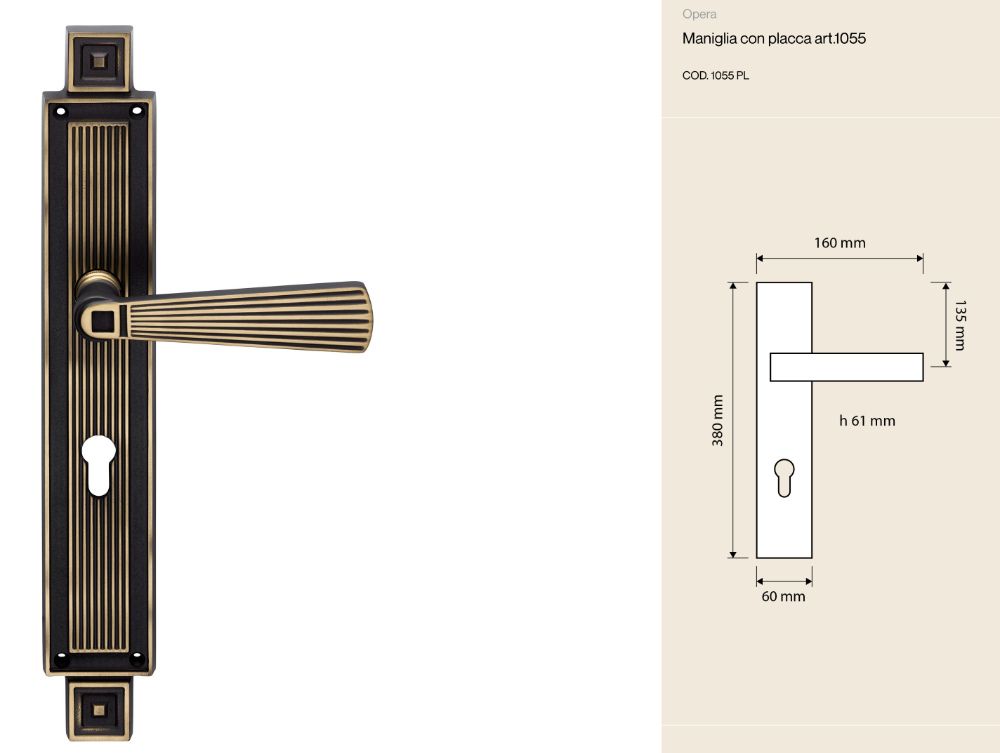 maniglia con placca Opera Linea Calì è un capolavoro di stile neoclassico che fonde eleganza e tradizione in un design dall’anima scultorea. Realizzata interamente in ottone di alta qualità, è caratterizzata da