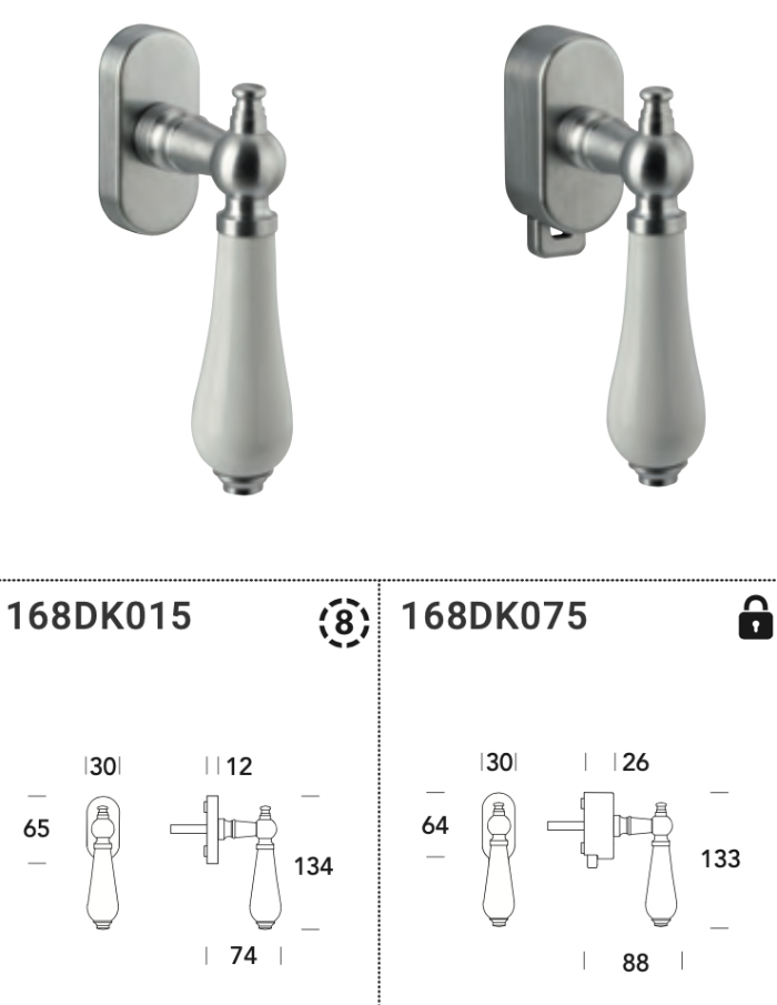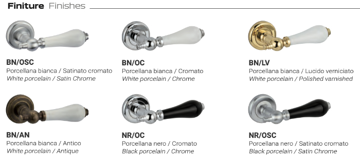 Maniglie per finestre in porcellana Reguitti: senza pulsante o con pulsante