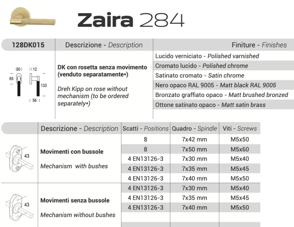 Maniglia per Finestra Zaira Reguitti Movimento DK Anta Ribalta