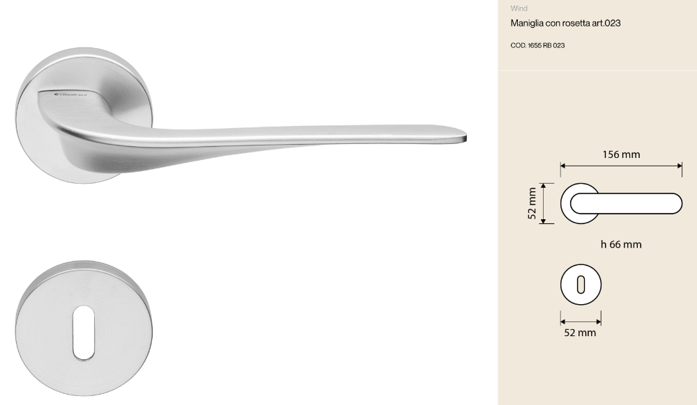 Realizzata in ottone di alta qualità nel distretto industriale di Brescia, questa maniglia è interamente Made in Italy, sinonimo di precisione e durata nel tempo. Perfetta sia per abitazioni private che per progetti contract, Wind rappresenta una scelta elegante e affidabile.