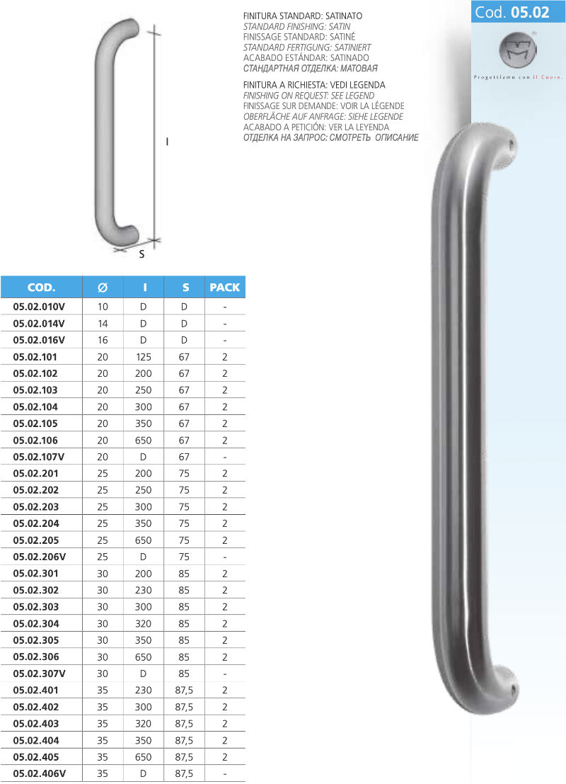- Maniglione in acciaio inox di diametro Ø a scelta.