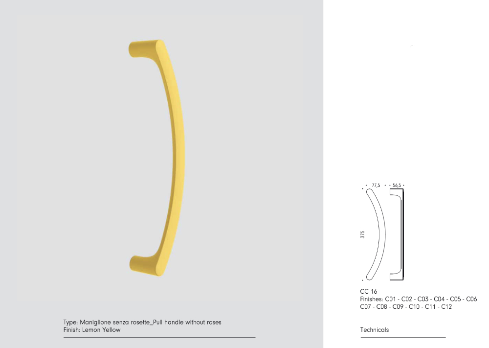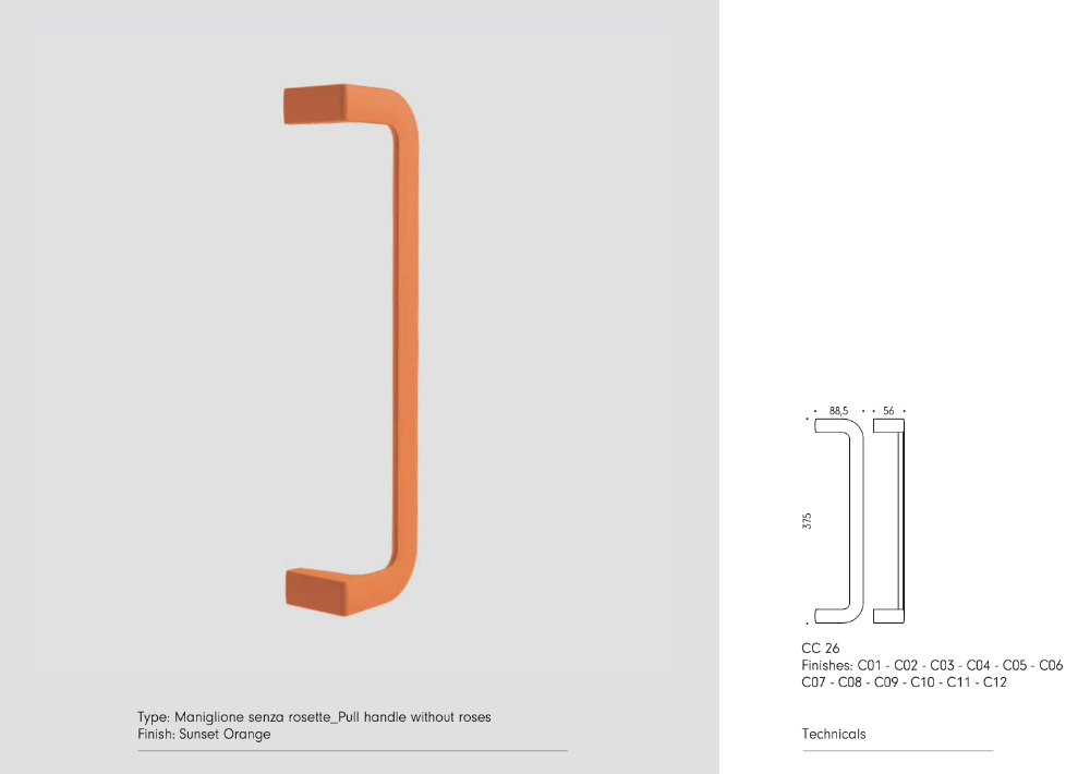 Ordinabile in due varianti di modello – ONE (CC16) dalle linee curve e morbide, oppure DUE (CC26) dal profilo squadrato e deciso – questo maniglione permette di personalizzare lo stile degli ambienti scegliendo la forma più adatta al proprio progetto.