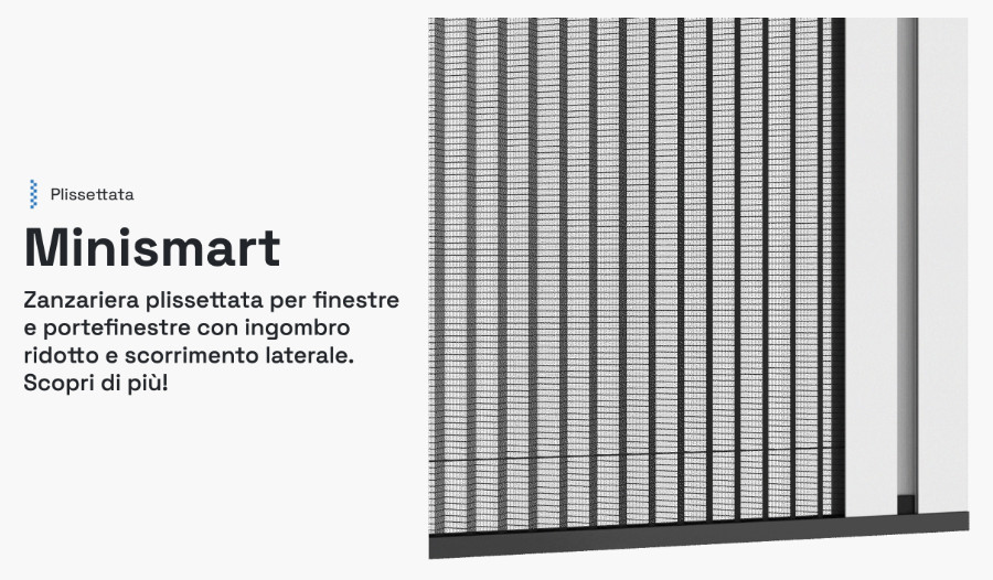 - Design ultra-slim e quasi invisibile: Minismart è la versione “spazio ridotto” della linea plissettata Primed: profili minimi e aspetto ancora più discreto rispetto alla Smart Primed.