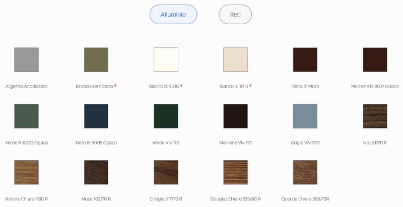 Colorazione alluminio: a scelta (seleziona la variante). Si effettuano preventivi su richiesta anche per altre colorazioni.