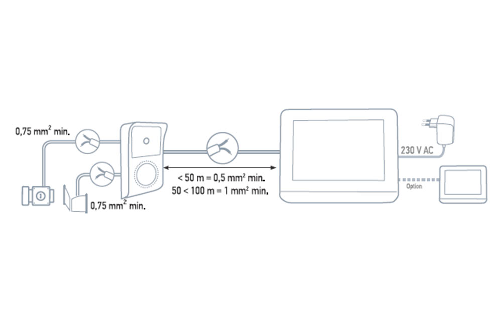 - Connessione alla pulsantiera con solo 2 fili (fino a 100 m);