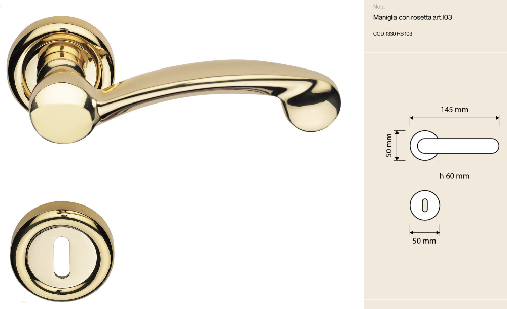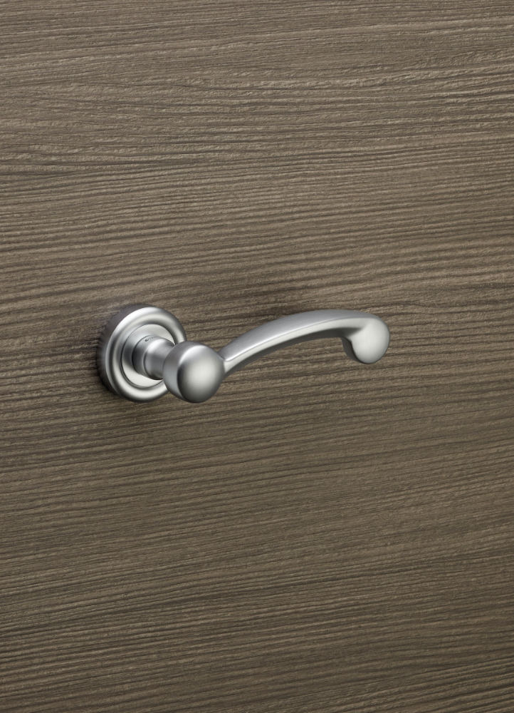 L’impugnatura, dal profilo equilibrato e piacevole al tatto, si distingue per la sua forma dolce e proporzionata, che richiama il linguaggio della musica e della bellezza senza tempo. Ogni dettaglio – dal terminale arrotondato alla rosetta armonicamente integrata – è pensato per offrire comfort, stile e solidità.