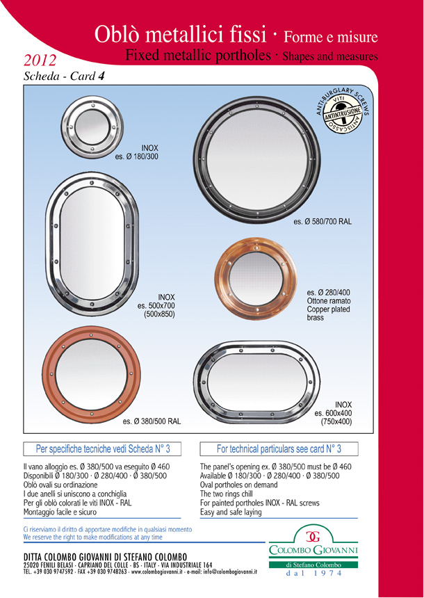 Fin dalla progettazione di questi oblò, l'obiettivo è quello di raggiungere la massima soddisfazione dei clienti recependone le precise esigenze. Per questo possiamo garantire la durata e la funzionalità di questi magnifici oblò.