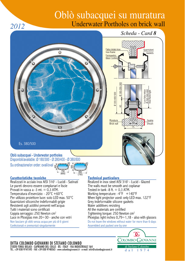 CARATTERISTICHE TECNICHE Oblò Subacqueo:
