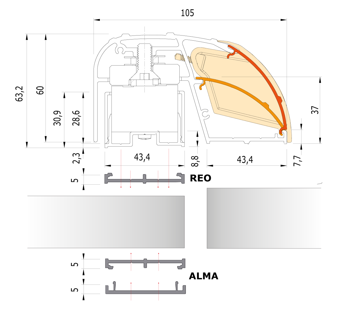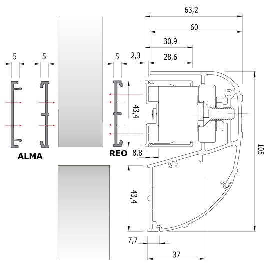 - Scalanatura sul retro del profilo per il passaggio cavo;