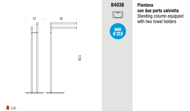 La piantana per bagno Mini B4038 è prodotta interamente in Italia da Colombo Design, un marchio sinonimo di eccellenza nel settore degli accessori per il bagno.