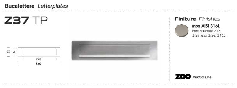 Placca per bucalettere Reguitti Inox Z37 TP, in acciaio Inox satinato AISI 316L.