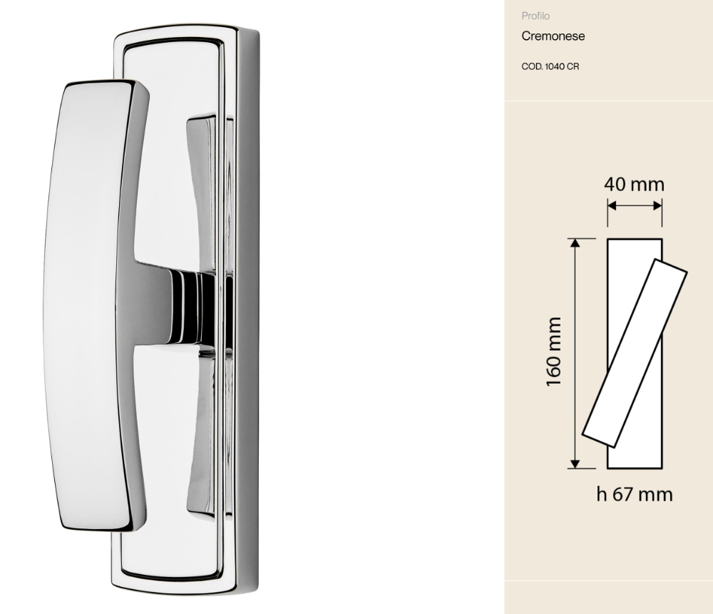 Profilo Linea Calì è la scelta perfetta per chi desidera una maniglia cremonese elegante, resistente e dallo stile senza tempo, interamente prodotta in Italia.