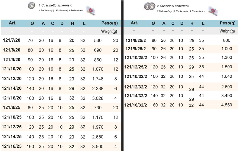 1 o 2 cuscinetti, a seconda delle esigenze dell'utente (seleziona la varante che desideri).