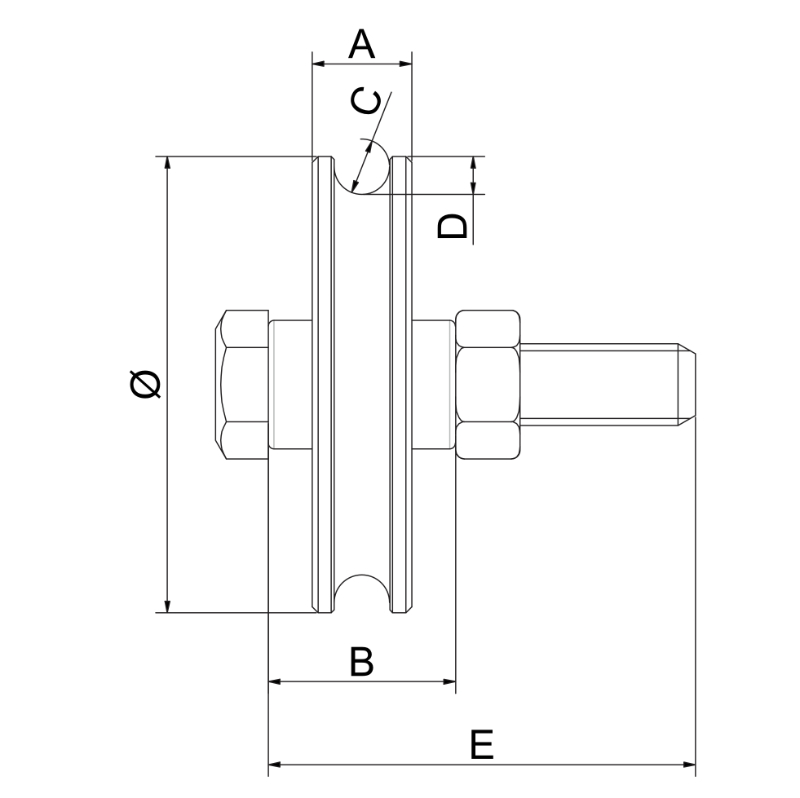 Misure ruota per cancello con supporto chiuso a uno o due cuscinetti