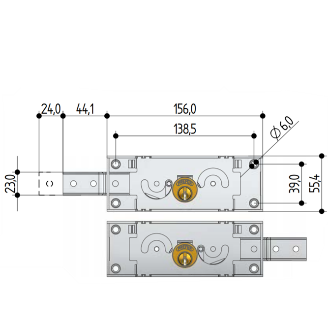 - Scatola in acciaio zincato 156 x 55,4 mm;