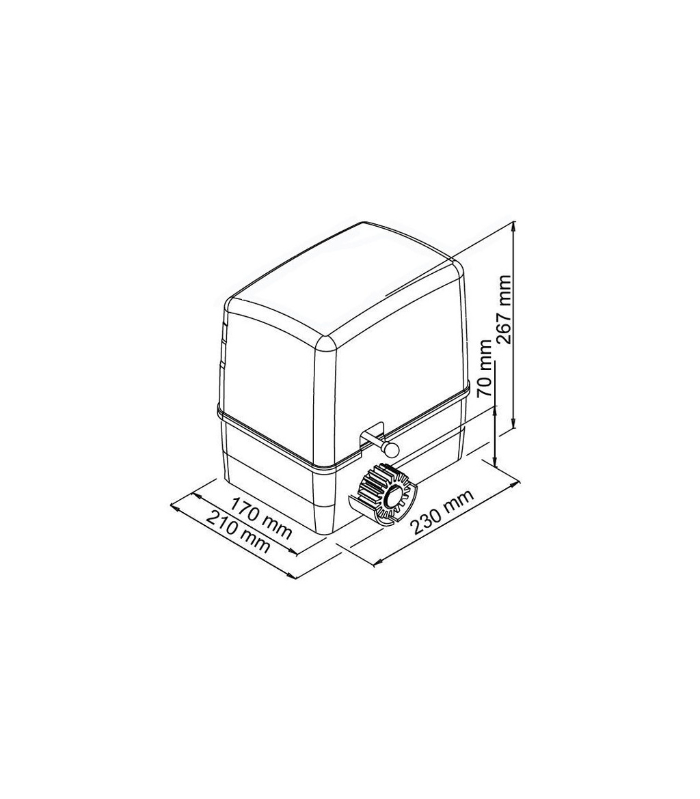 motore per cancelli scorrevoli fino a 600 Kg. Il voltaggio è 230V oppure 24V (a scelta). Questo